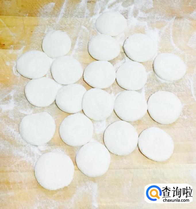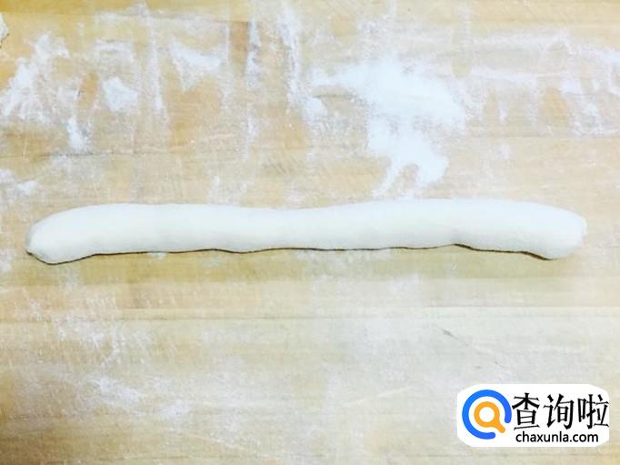 取一小块醒好的面团搓成长条,切成面剂子按扁后擀成饺子皮