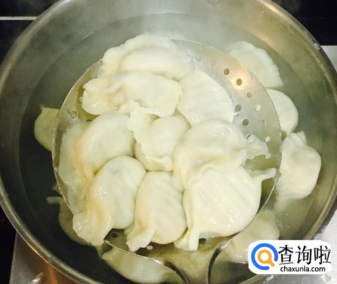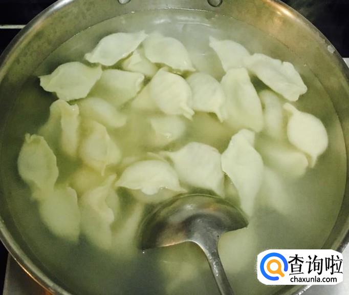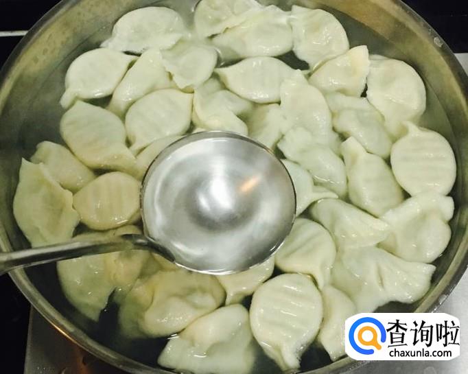 锅中加水煮沸下入包好的饺子,煮至沸腾后点凉水煮沸,重复一次此步骤饺子就成熟了