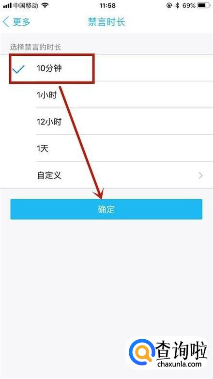 最后选择要禁言的时间,并点击确定就可以了。你学会了吗?赶快动手试一试吧。