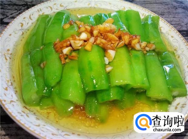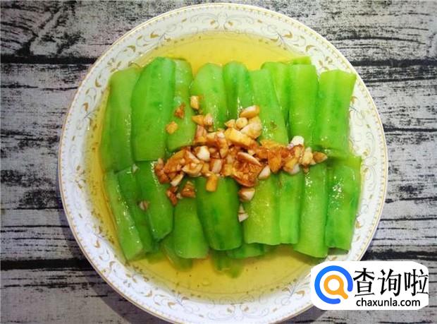 然后将蒜蓉汁均匀淋在丝瓜上,这样一盆好吃美味的蒜蓉浇丝瓜就做好了。