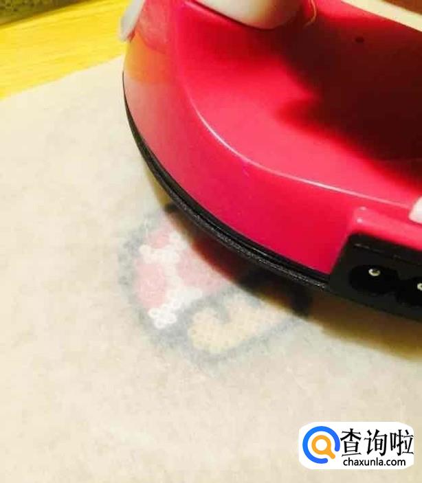 拼好后再取一张纸盖在上面,先用手压一下,然后把熨斗加热,用熨斗慢慢的把拼豆颗粒熨平。
