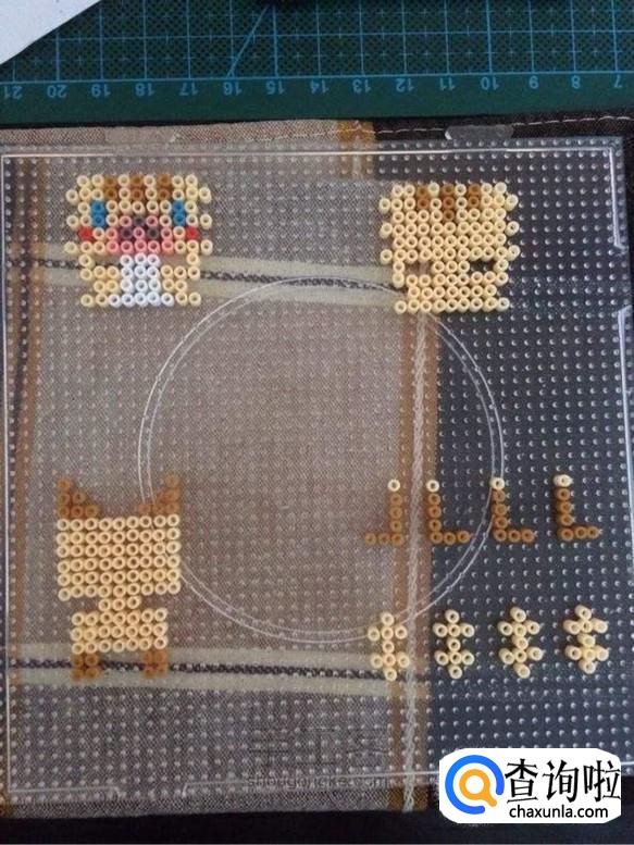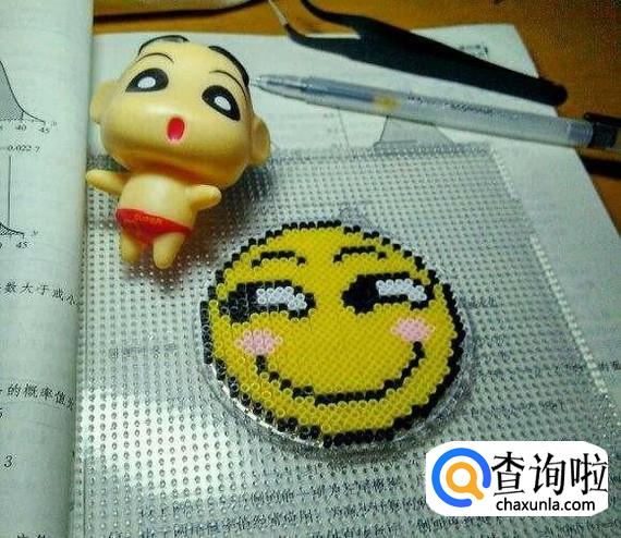 首先用镊子夹起拼豆颗粒,慢慢地放在棉质的纸上,然后拼出自己喜欢的形状。