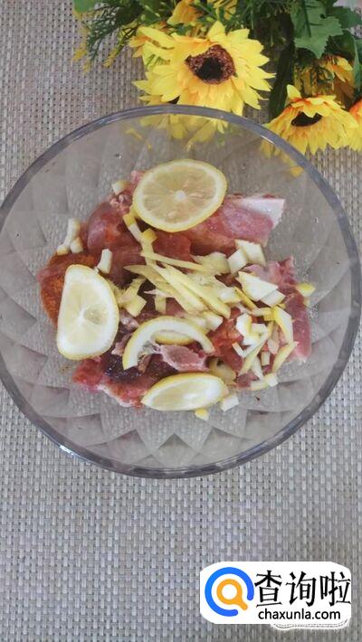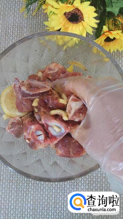 准备适量排骨,用清水洗净,放入适量盐,料酒,生姜,再准备适量柠檬切成片儿,再切成碎末,用手抓拌均匀,腌制一个小时以上。