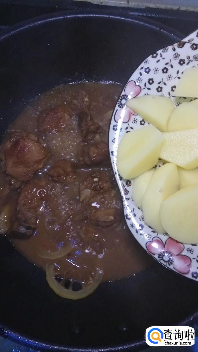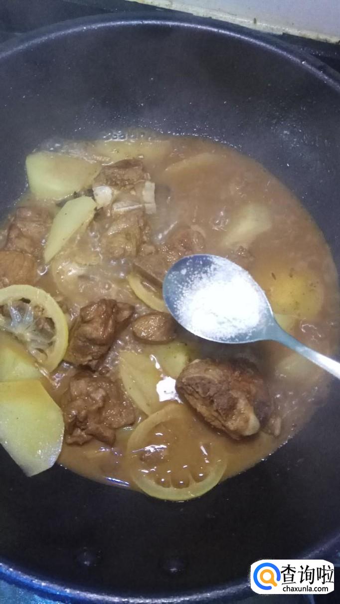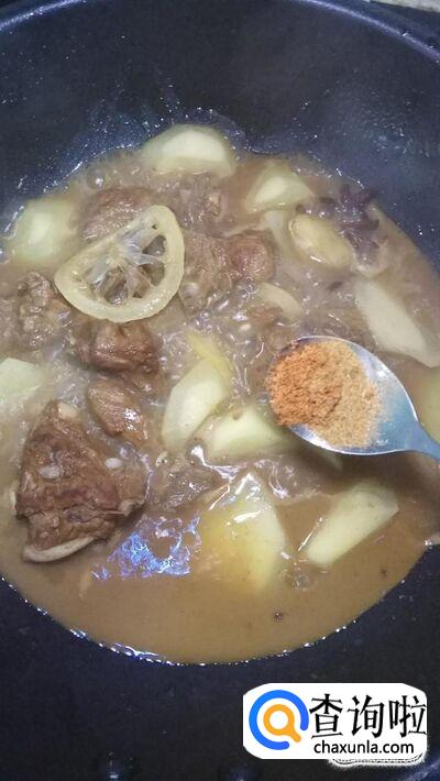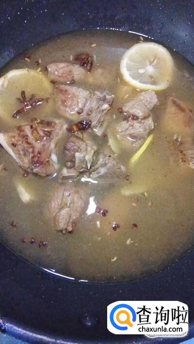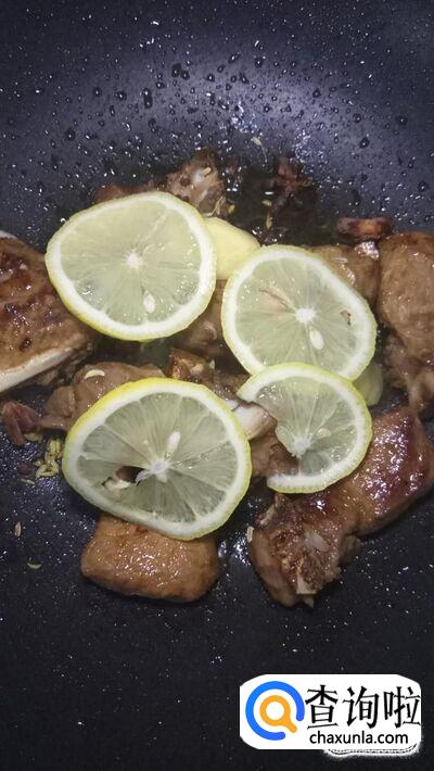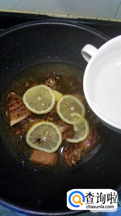 再加入几片柠檬,然后倒入没过排骨的水,盖上锅盖,小火慢炖30分钟。
