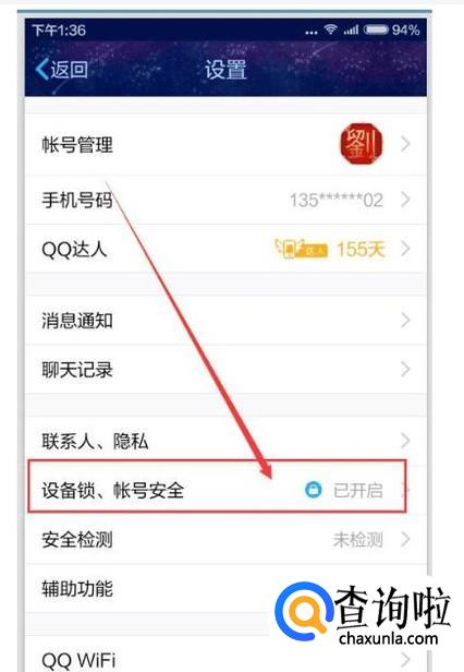 首先,是你可以点开QQ中的“设置”,进入到里面之后,如图点开“设备锁、账号安全”,点击开启,就可以防止你的QQ号被盗之类情况的发生。