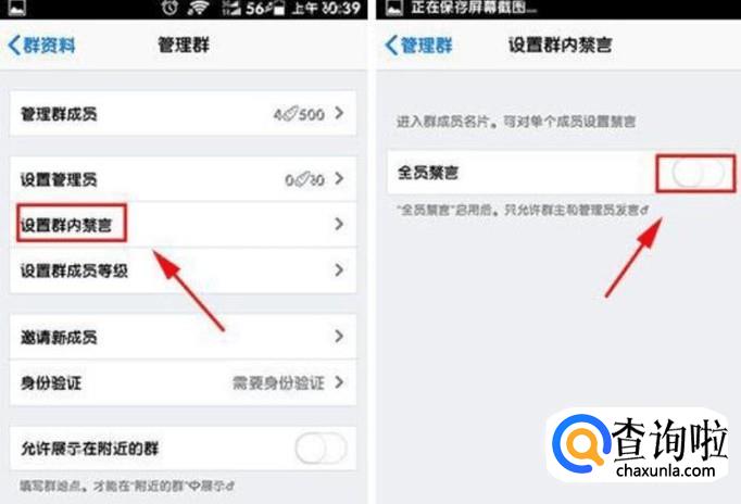 再者,当你管理一个群时,有需要使全体禁言,就可以在“设置群内禁言”中,把这个按钮打开。