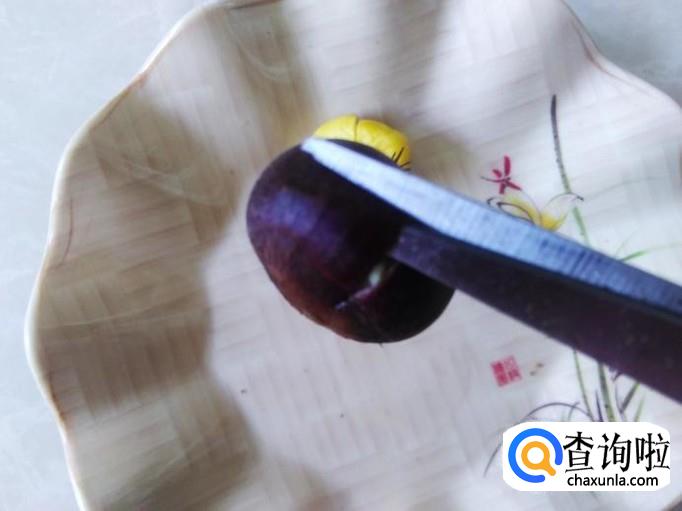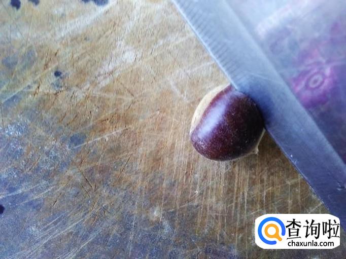 然后用刀在每个板栗中间切一个小缝。