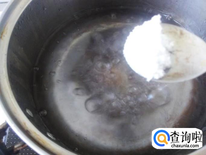 锅里装适量的水,加一小勺盐进去煮沸,然后熄火。