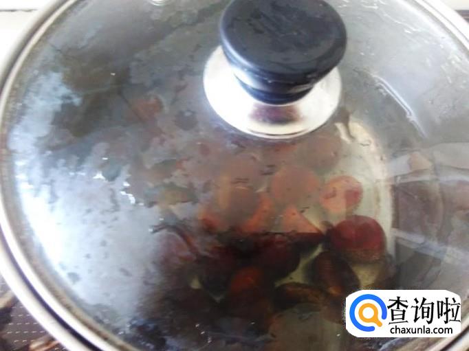 把切好缝的板栗倒进去,盖上盖子焗5分钟左右。