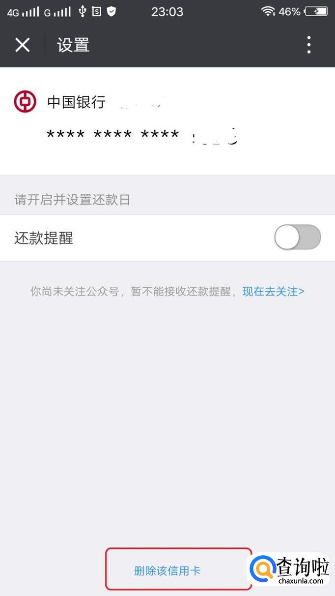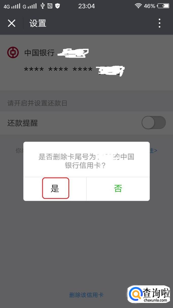 转到该信用卡管理页面,我们可以看到页面底部有“删除该信用卡”字样,点击一下,在弹出的“是否删除”选项中,选择“是”。