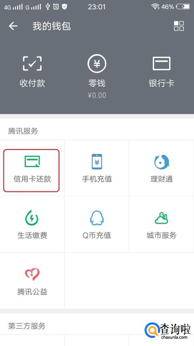 打开微信“我的钱包”页面,点击“信用卡还款”。