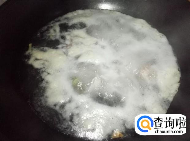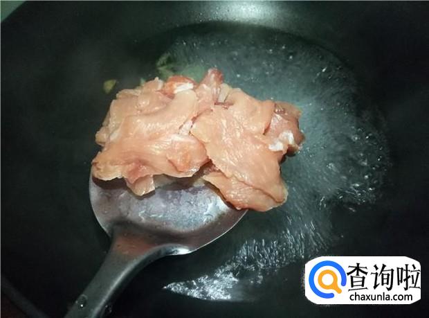 锅里准备适量的清水,一般建议用碗来测,家里多少人喝汤,就放多少碗水。然后把姜片放入锅中,大火把水煮开,然后放入瘦肉片。