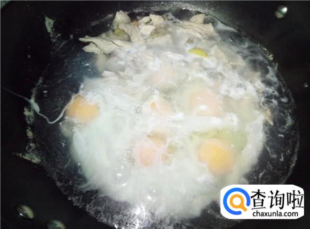 鸡蛋煮熟后,加入适量的盐和鸡精,即可装碗,撒上少许葱花,美味的瘦肉鸡汤汤就做好了。