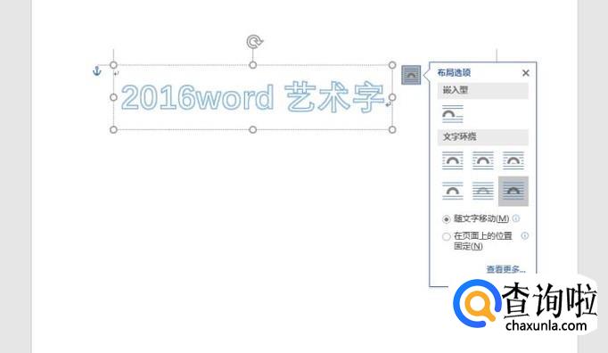 这时候我们会发现艺术字框旁边有一个小图标,它是调整艺术字与文字之间的布局的,当然这个选项在艺术字的菜单中也有的。