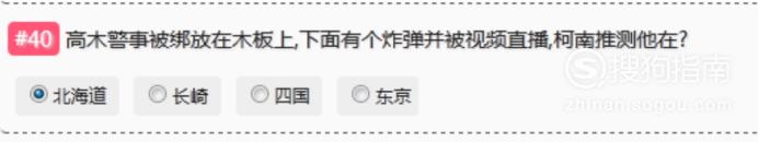 高木警事被绑放在木板上,下面有个炸弹并被视频直播,柯南推测他在“北海道”。