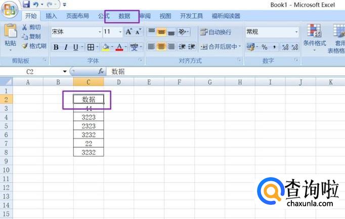 之后我们点击数据那个单元格,然后点击工具栏中的数据;