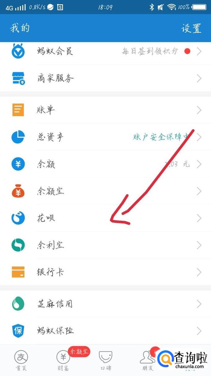 点击“花呗”选项,如图1箭头所示。然后你会看到出现一个新的界面,如图2所示。
