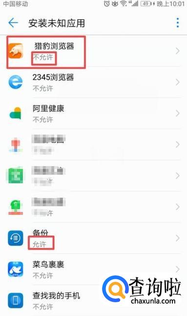 然后我们就可以看到有些应用是允许安装未知应用的,有些则不允许,我们出现无法安装软件的都是这些不允许的应用,我们点击其中一个;