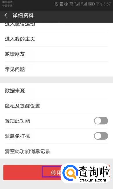 弹出的界面,我们下滑到页面最下方,然后我们点击停用就可以了。这样就可以微信怎么关闭自己的微信运动功能和数据了。
