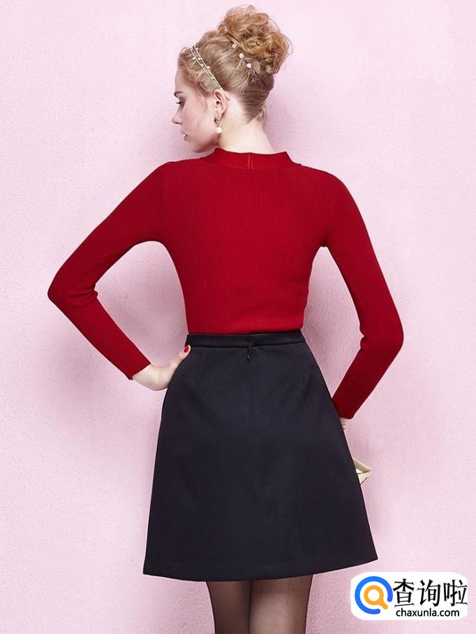 大红色毛衣配A字裙。这样的搭配看起来非常淑女,而且有一种正式感,很适合职业女性。