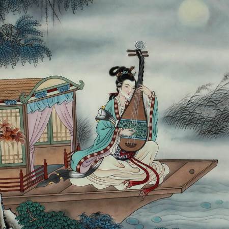 “大珠小珠落玉盘”本意是指大小雨点落在荷叶上的声音。在白居易的《琵琶行》中是指琵琶弹奏出的动人声乐。到了唐代(公元7-9世纪)琵琶的发展出现了一个高峰。当时上至宫廷乐队, 下至民间演唱都少不了琵琶, 随成为当时非常盛行的乐器, 而且在乐队处于领奏地位。