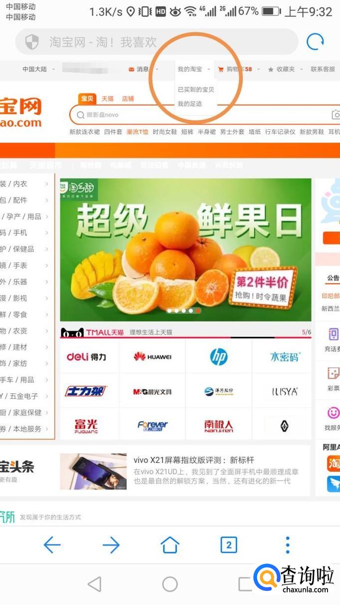 在成功变成电脑的界面后,再点击“我的淘宝”,选择“已买到宝贝”,如图