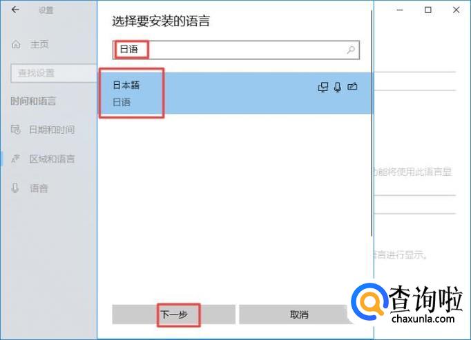 之后我们在搜索框中输入日语,然后弹出的日语,我们点击它,之后我们点击下一步;