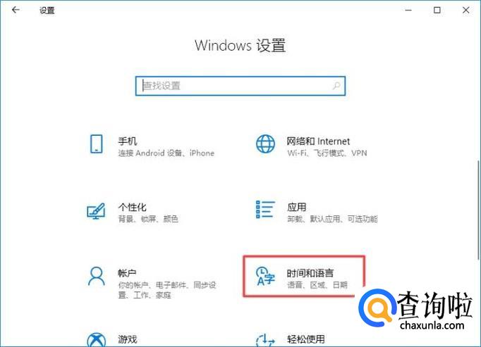 弹出的界面,我们点击时间和语言;