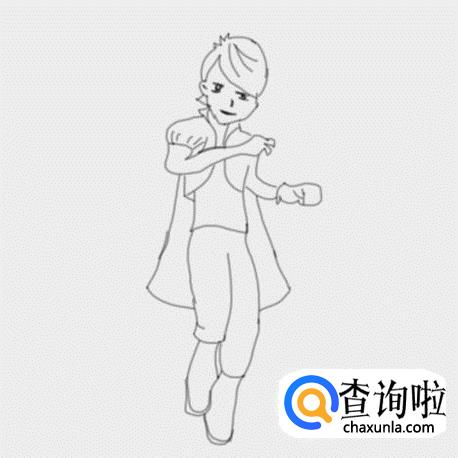 最后在身体的后面再画出王子的披风,这样儿童简笔画王子就画好了,如图所示: