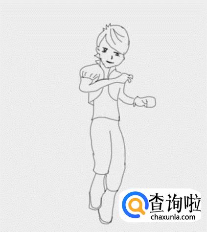 再画出王子的身体,然后在身体的下面画出王子的两条腿及脚部,如图所示: