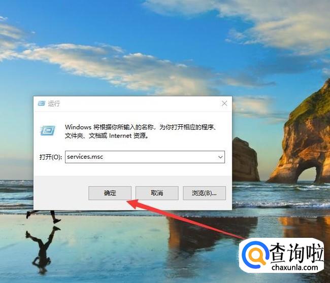 在运行面板输入“services.msc”,点击“确定”进入下一页面,如图所示。