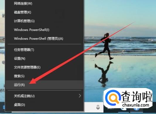 打开电脑,右击Windows按键,选择“运行”,如图所示。
