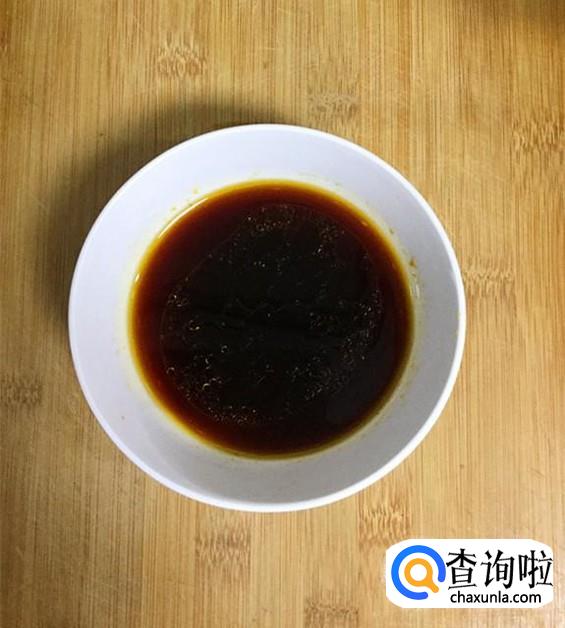 准备1个小碗,依次放入1小勺蒸鱼豉油、香醋、辣椒酱和白糖,搅拌均匀,再加入少许凉开水,搅匀后做成调味汁。
