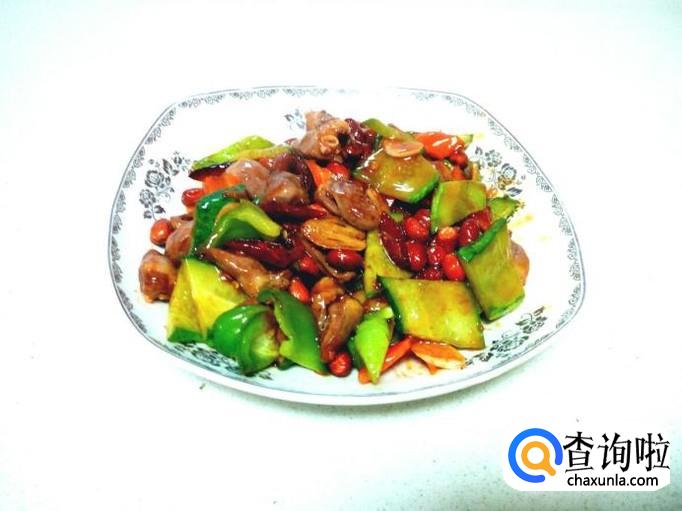 鸡心 250克 ,花生米 100克 ,胡萝卜 半根,旱黄瓜 1根 ,青尖椒 半根 。