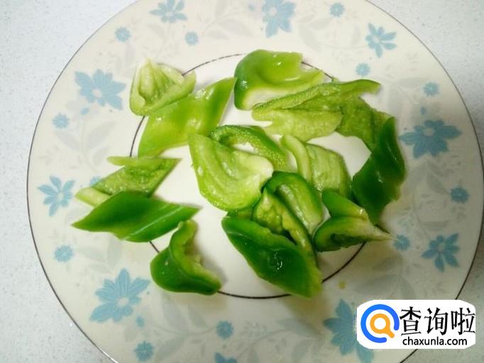 黄瓜用水清洗干净,控干水分,切成片。青尖椒用水清洗干净,控干水分,切成片。