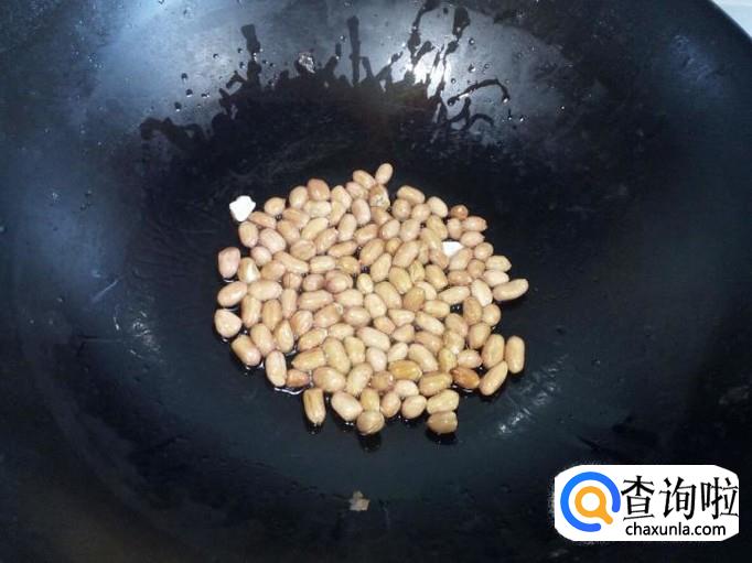芡汁粘稠后,放入味精,关火。然后放入炒好的花生米出勺。