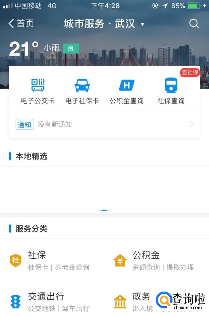 首先打开我们的支付宝软件,打开后进入到支付宝主界面,找到城市服务选项,点进进入然后把地点切换成武汉或者杭州