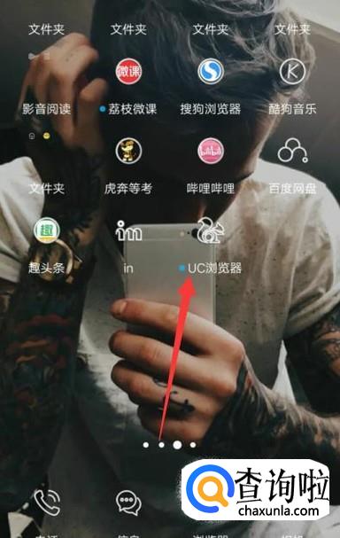 打开手机,找到UC浏览器,点击并进入,如图所示。
