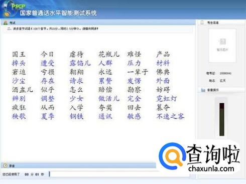 念词。这部分占20分。和刚才的读字差不多,但是要把握好节奏,不用时快时慢,这样会扣费。