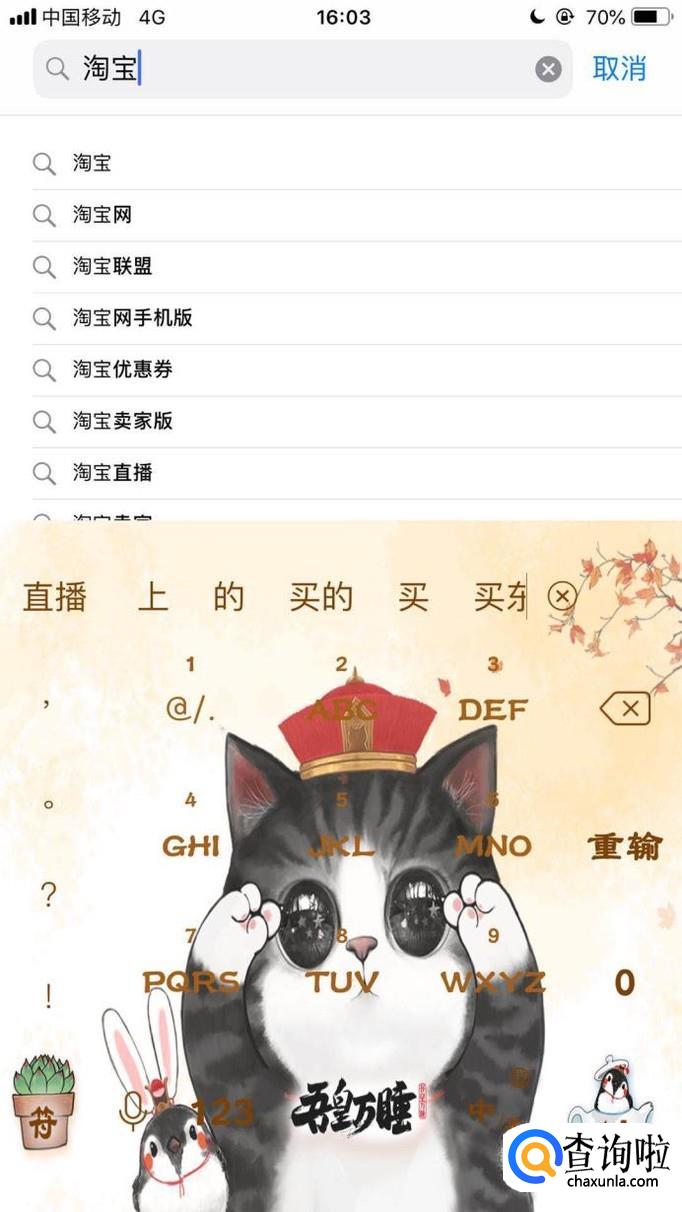 然后输入淘宝并点击搜索,如下图所示。