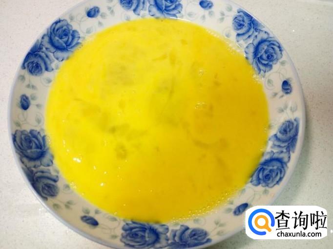 鸡蛋打入盘中,搅拌成鸡蛋液。