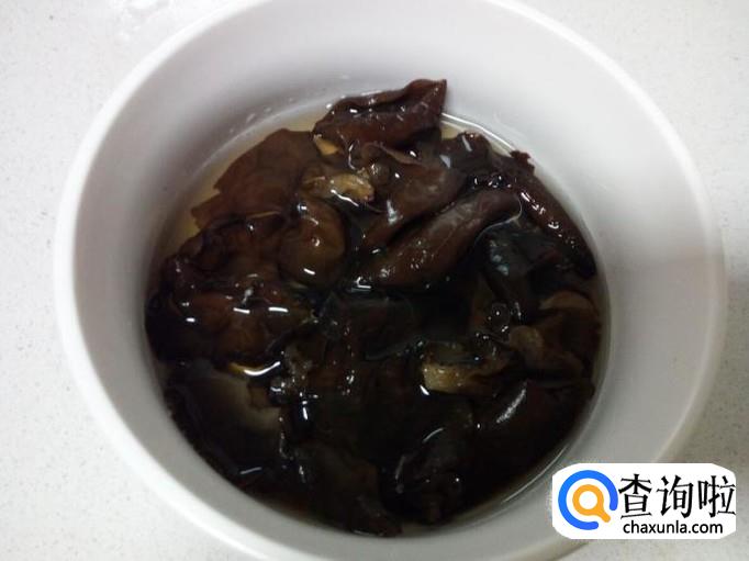 先用温水把木耳快速泡发,泡发好木耳后,用水清洗干净,控干水分,备用。
