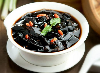 龟苓膏是历史悠久的传统药膳,相传最初是清宫中专供皇帝食用的名贵药物。它主要以名贵的鹰嘴龟和土茯苓为原料,以甘草,再配生地等药物精制而成。一般呈凝固的膏状,似凉粉,也可热饮。其性温和,不凉不燥,老少皆宜,具有清热去湿,旺血生肌,止瘙痒,去暗疮,润肠通便,滋阴补肾,养颜提神等功效,因而倍受人们喜爱,并畅销中外。