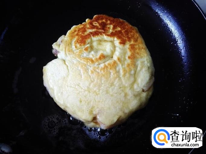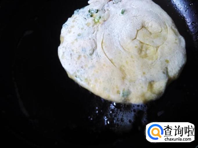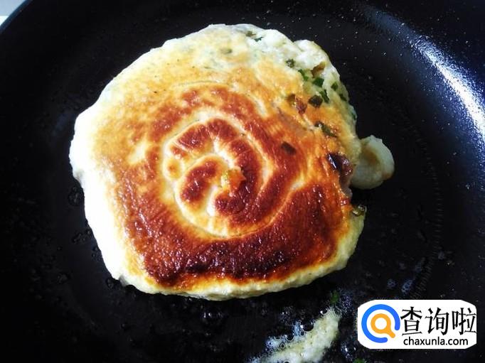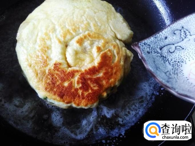 热锅下油,放大饼进去用小火煎3分钟左右。