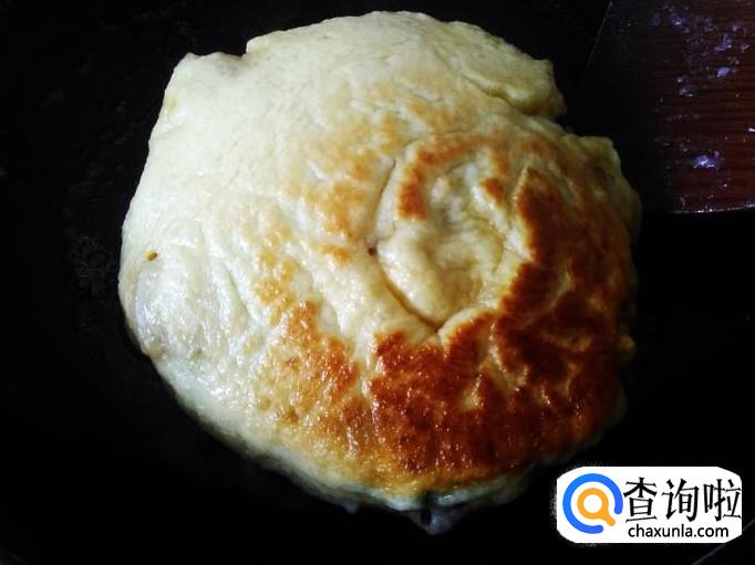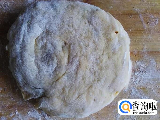 然后压成大厚饼。【不要压得太薄,猪肉和葱花会爆裂出来的】