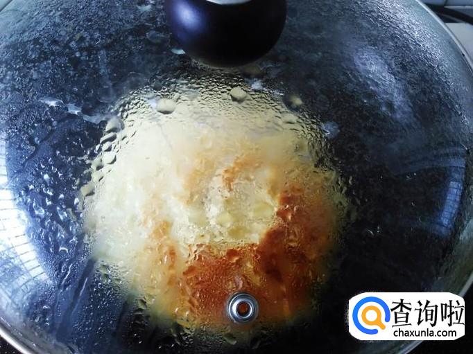 再煎2分钟左右,两面煎至金黄色,然后加半碗水进去,盖上盖子小火焗。