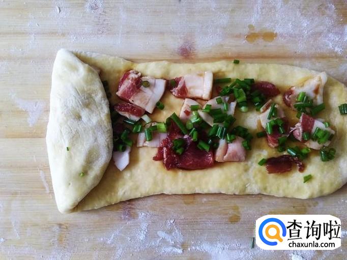 面粉150克,鸡蛋2个,酵母【按说明下料】半肥瘦猪肉150克,香葱适量。