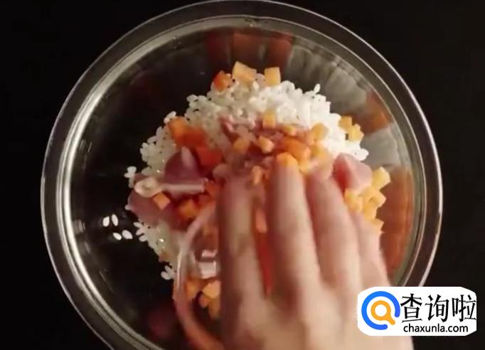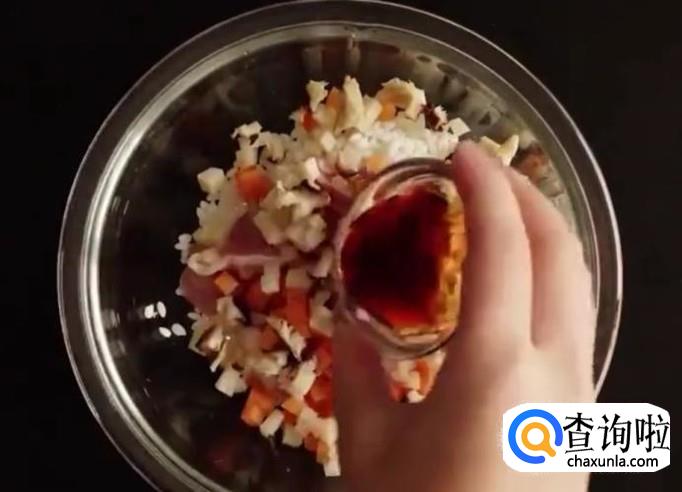 放入适量胡萝卜丁,笋丁,香菇丁,酱油。