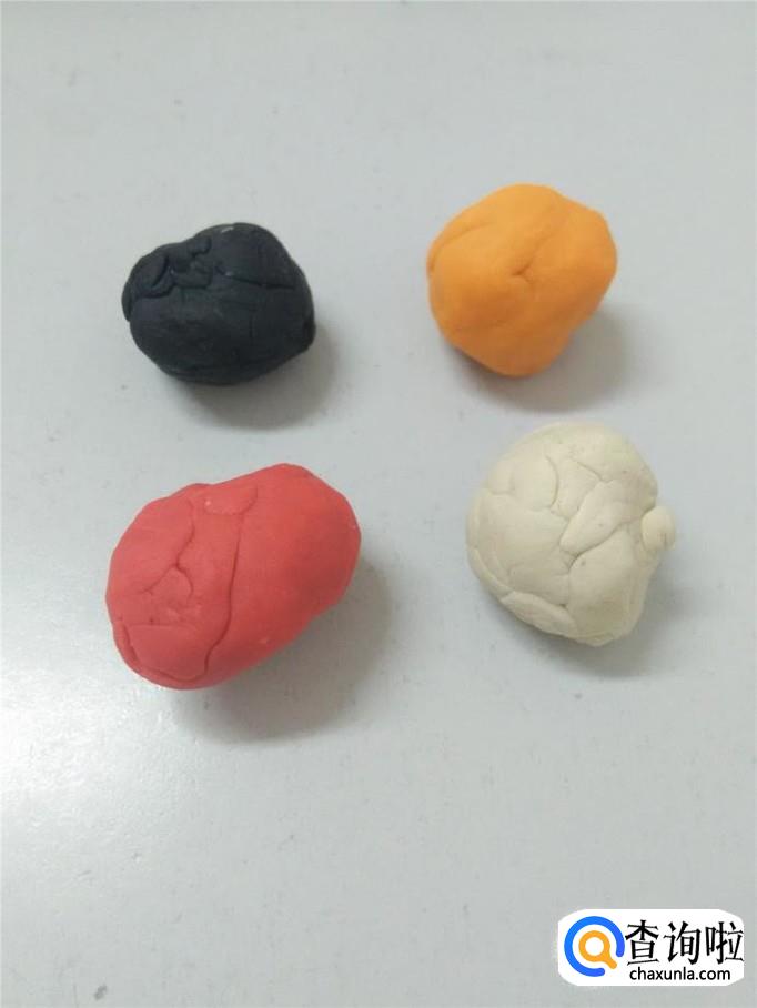 用桔黄色团一个小球,粘在眼睛下面,当作鼻子。