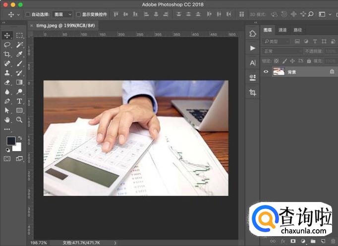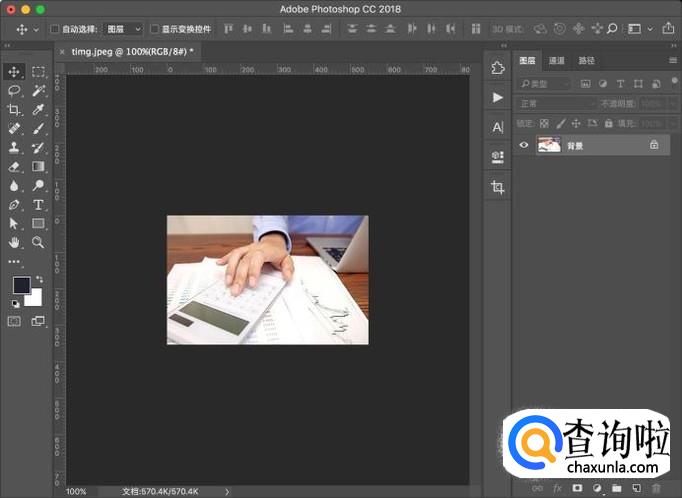 打开电脑中的PS软件,然后将需要进行处理的图片拖入PS中打开。
